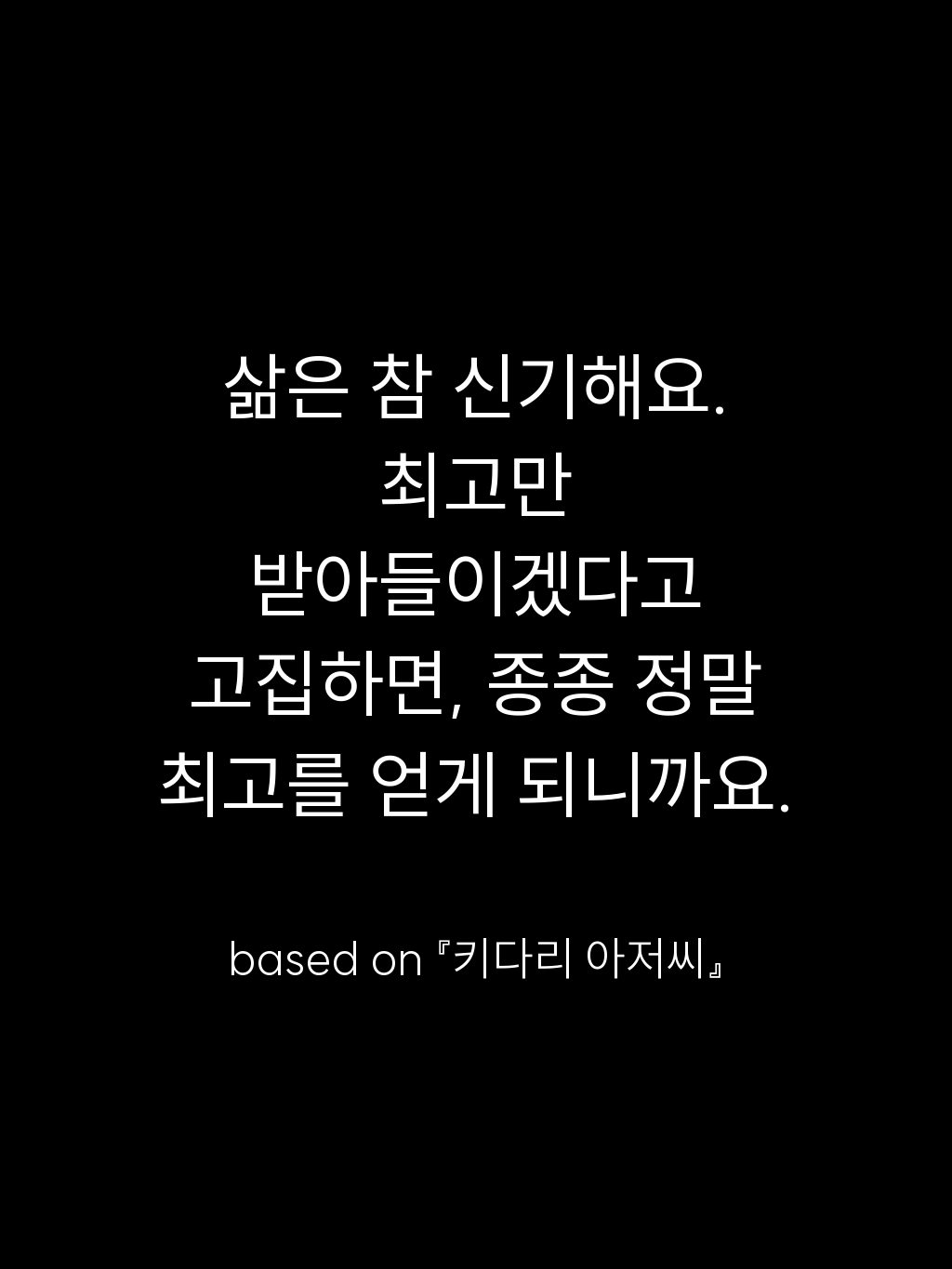 삶은 참 신기해요. 최고만 받아들이겠다고 고집하면, 종종 정말 최고를 얻게 되니까요.