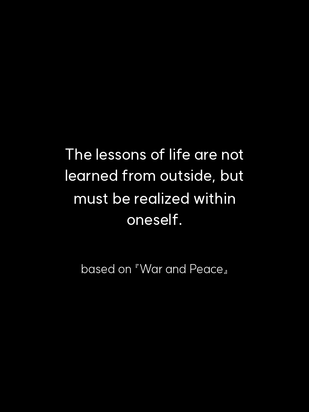 The lessons of life are not learned from outside, but must be realized within oneself. – based on 『War and Peace』