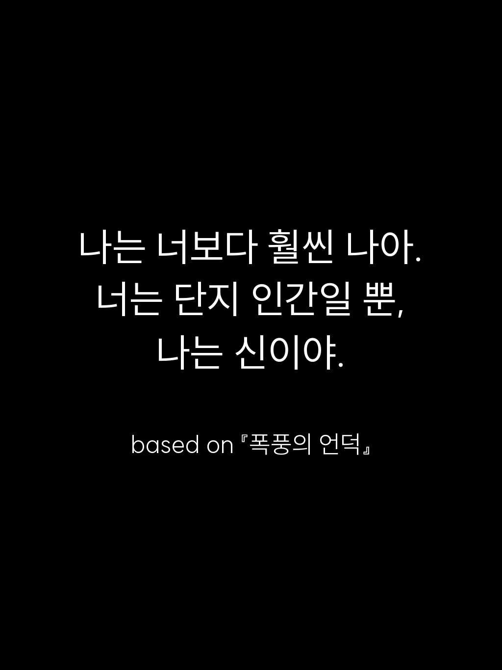 나는 너보다 훨씬 나아. 너는 단지 인간일 뿐, 나는 신이야. – based on 『폭풍의 언덕』