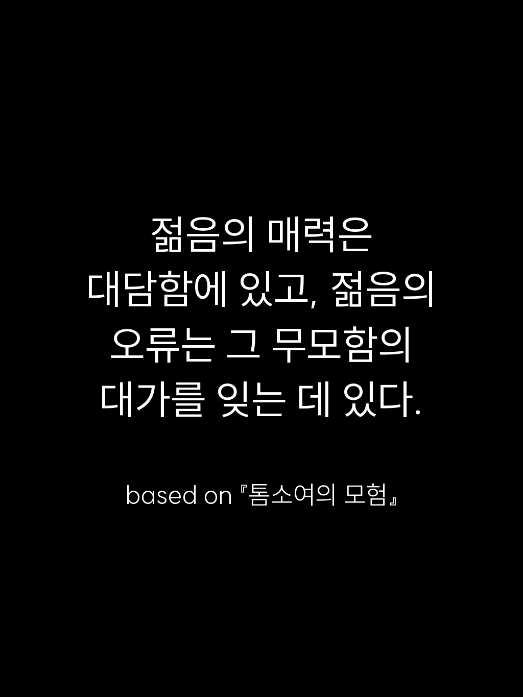 젊음의 매력은 대담함에 있고, 젊음의 오류는 그 무모함의 대가를 잊는 데 있다.
