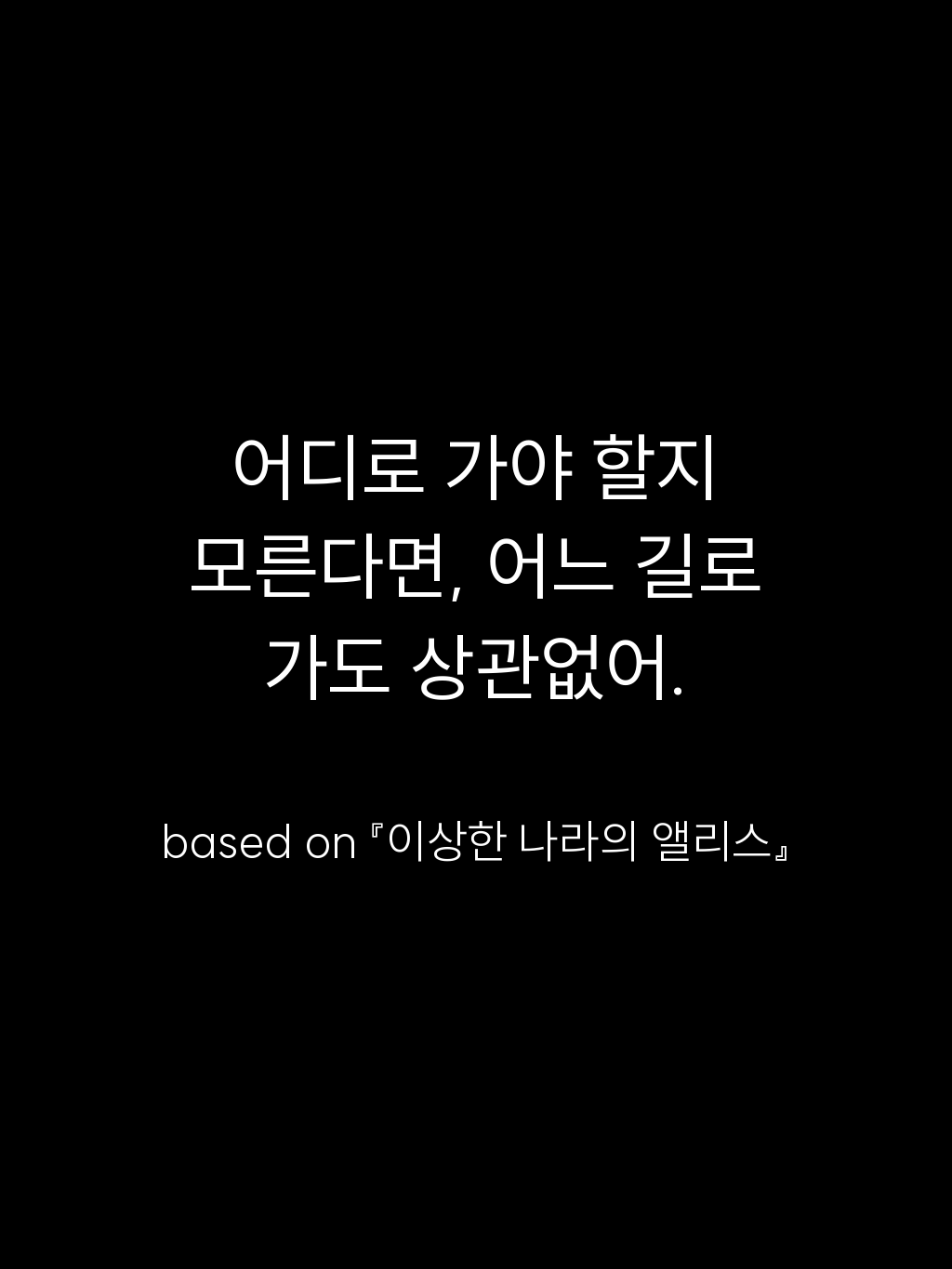 어디로 가야 할지 모른다면, 어느 길로 가도 상관없어.