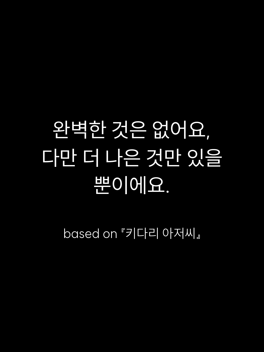 완벽한 것은 없어요, 다만 더 나은 것만 있을 뿐이에요.