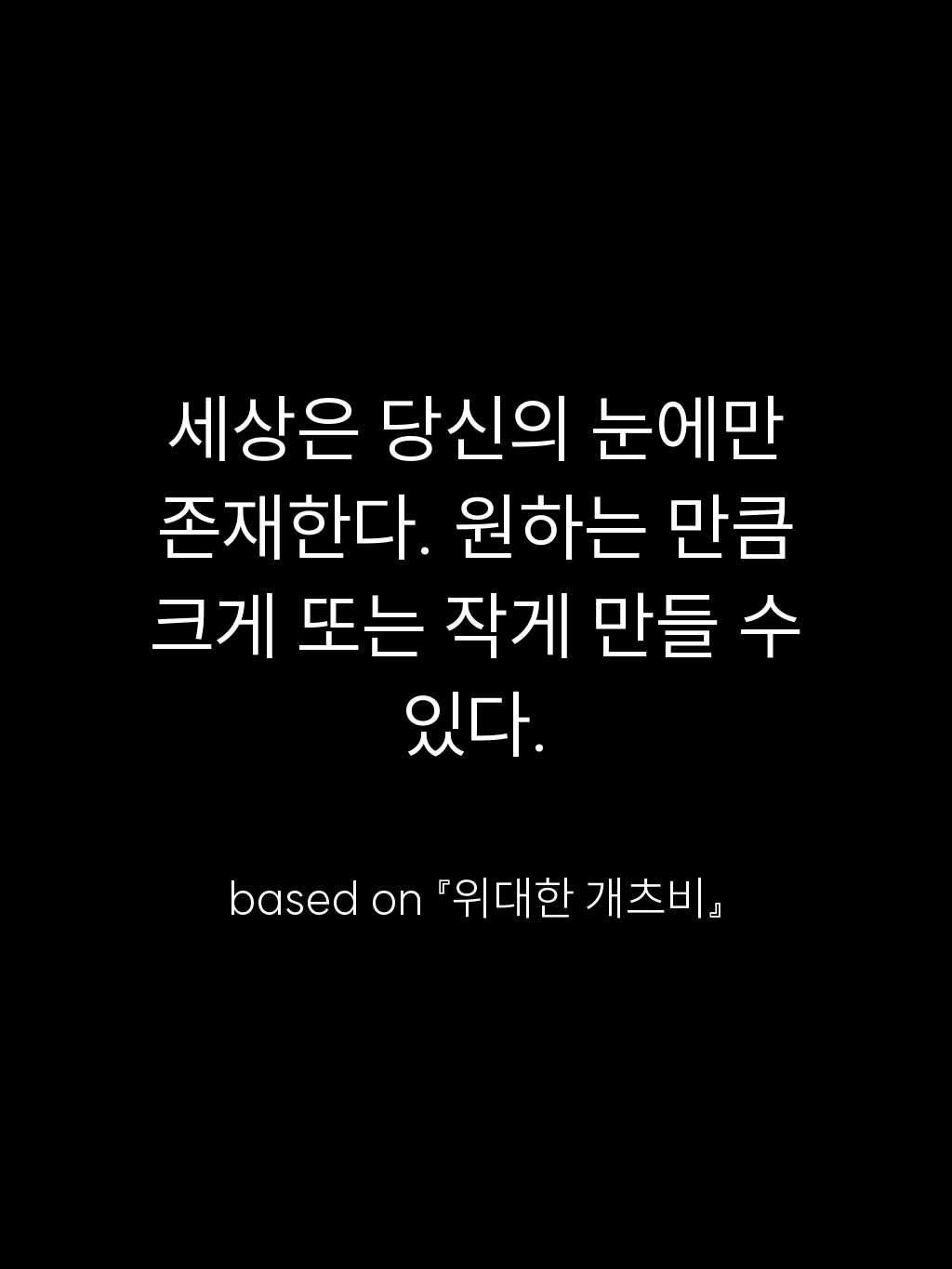세상은 당신의 눈에만 존재한다. 원하는 만큼 크게 또는 작게 만들 수 있다.