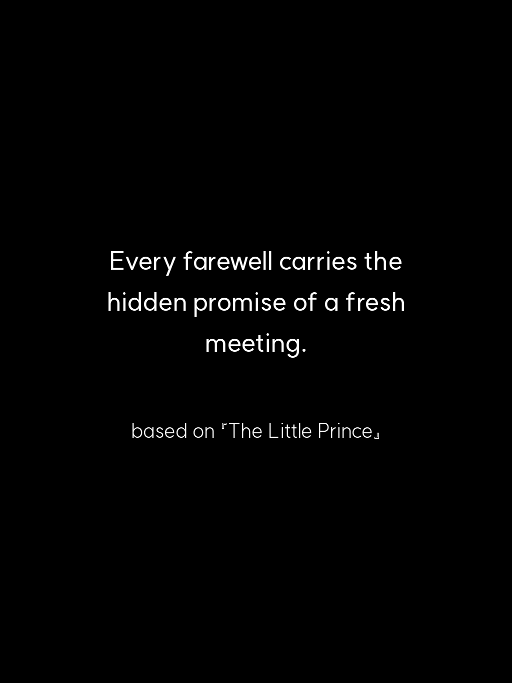 • Every farewell carries the hidden promise of a fresh meeting. – based on 『The Little Prince』
