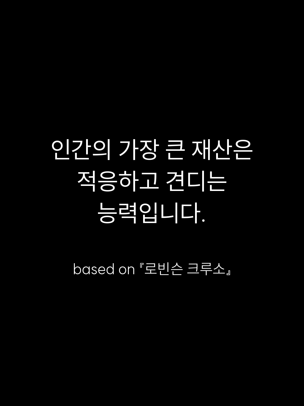 • 인간의 가장 큰 재산은 적응하고 견디는 능력입니다. – based on 『로빈슨 크루소』