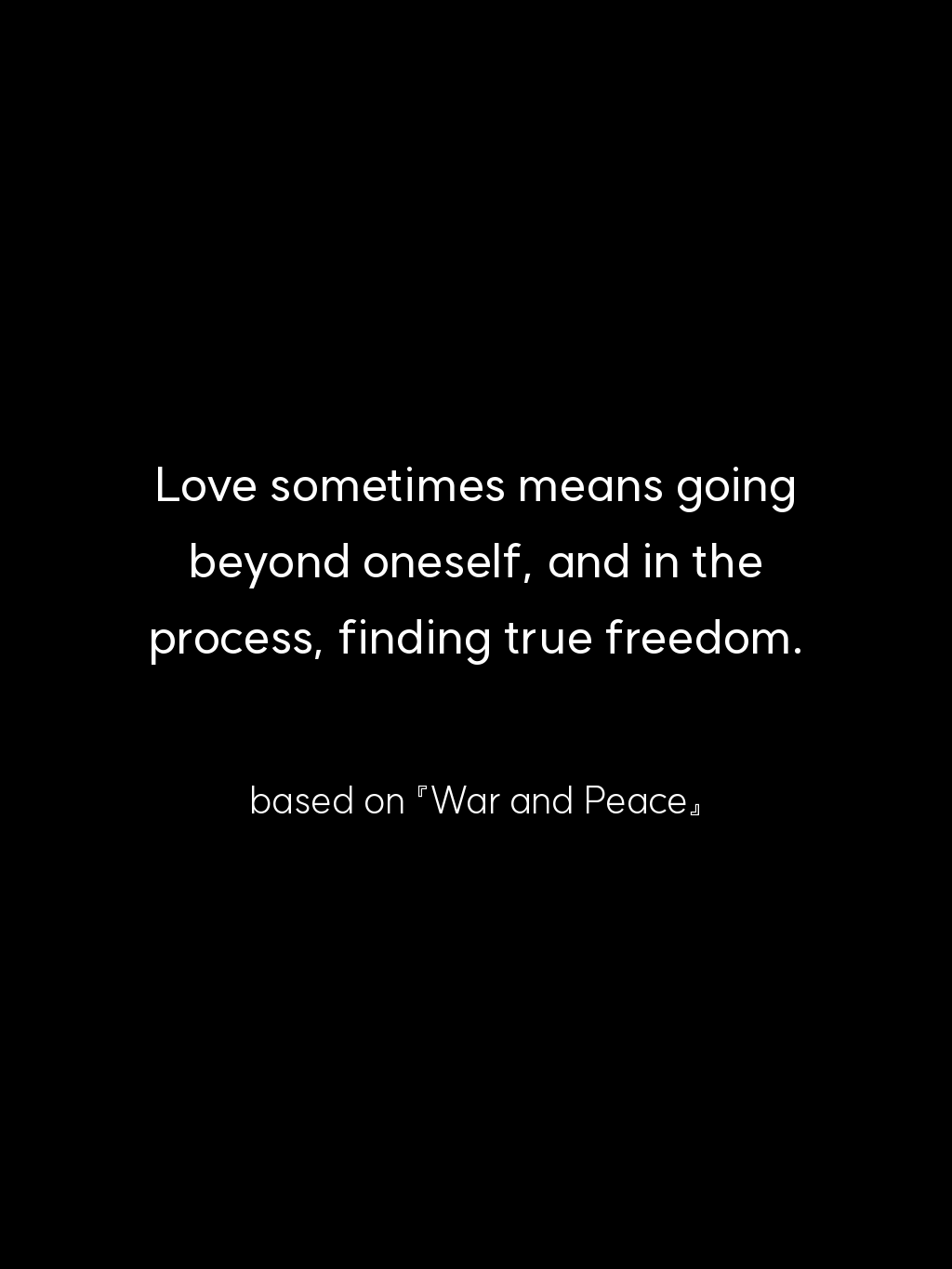 • Love sometimes means going beyond oneself, and in the process, finding true freedom. – based on 『War and Peace』