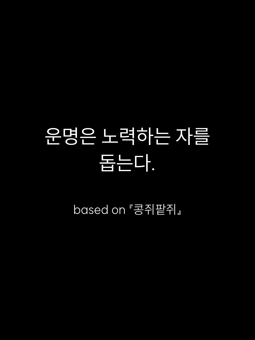 • 운명은 노력하는 자를 돕는다. – based on 『콩쥐팥쥐』