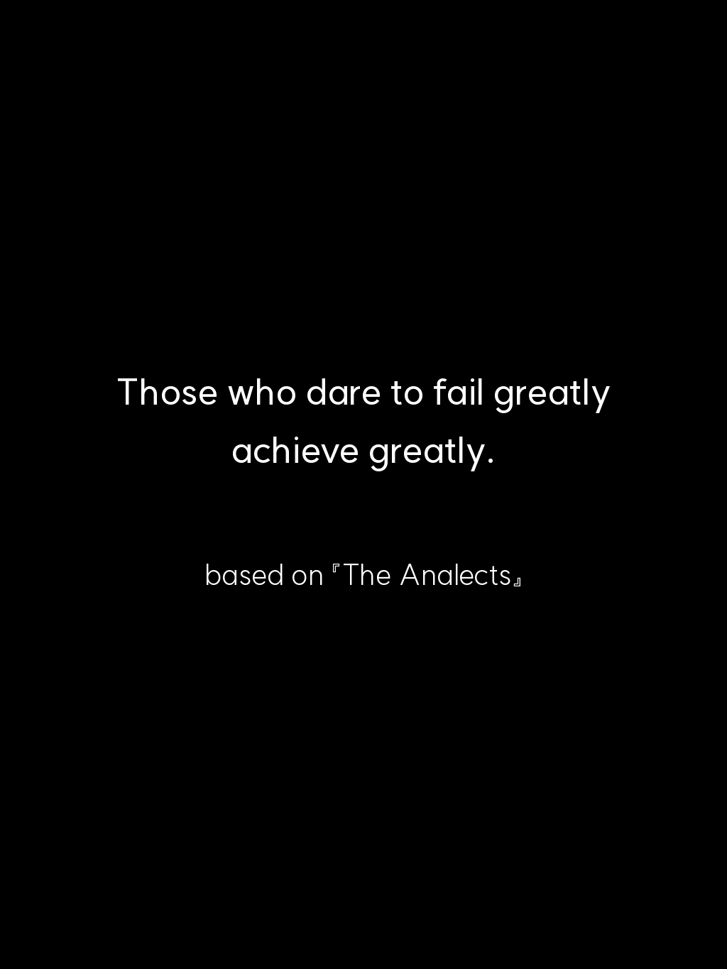 • Those who dare to fail greatly achieve greatly. – based on 『The Analects』