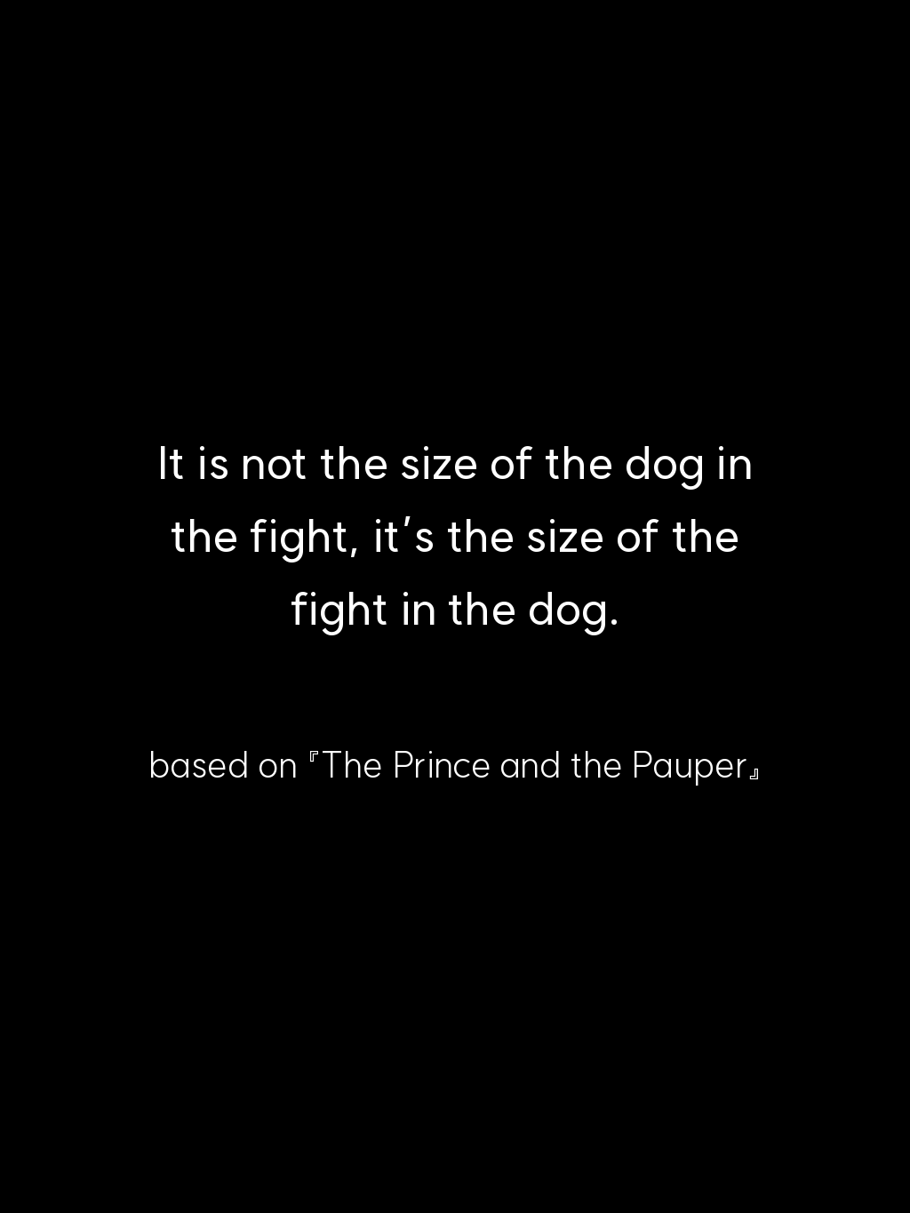 • It is not the size of the dog in the fight, it’s the size of the fight in the dog. – based on 『The Prince and the Pauper』