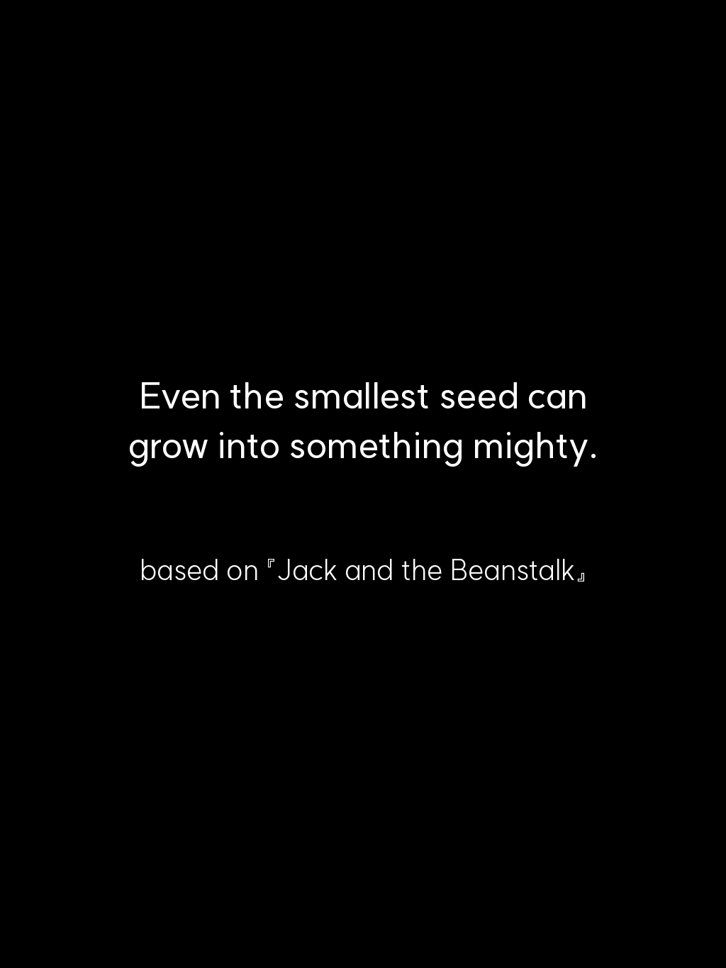 • Even the smallest seed can grow into something mighty. – based on 『Jack and the Beanstalk』