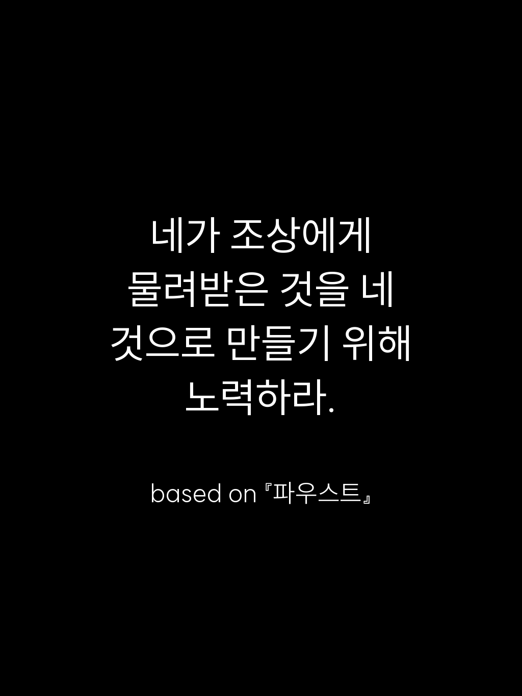 • 네가 조상에게 물려받은 것을 네 것으로 만들기 위해 노력하라. – based on 『파우스트』