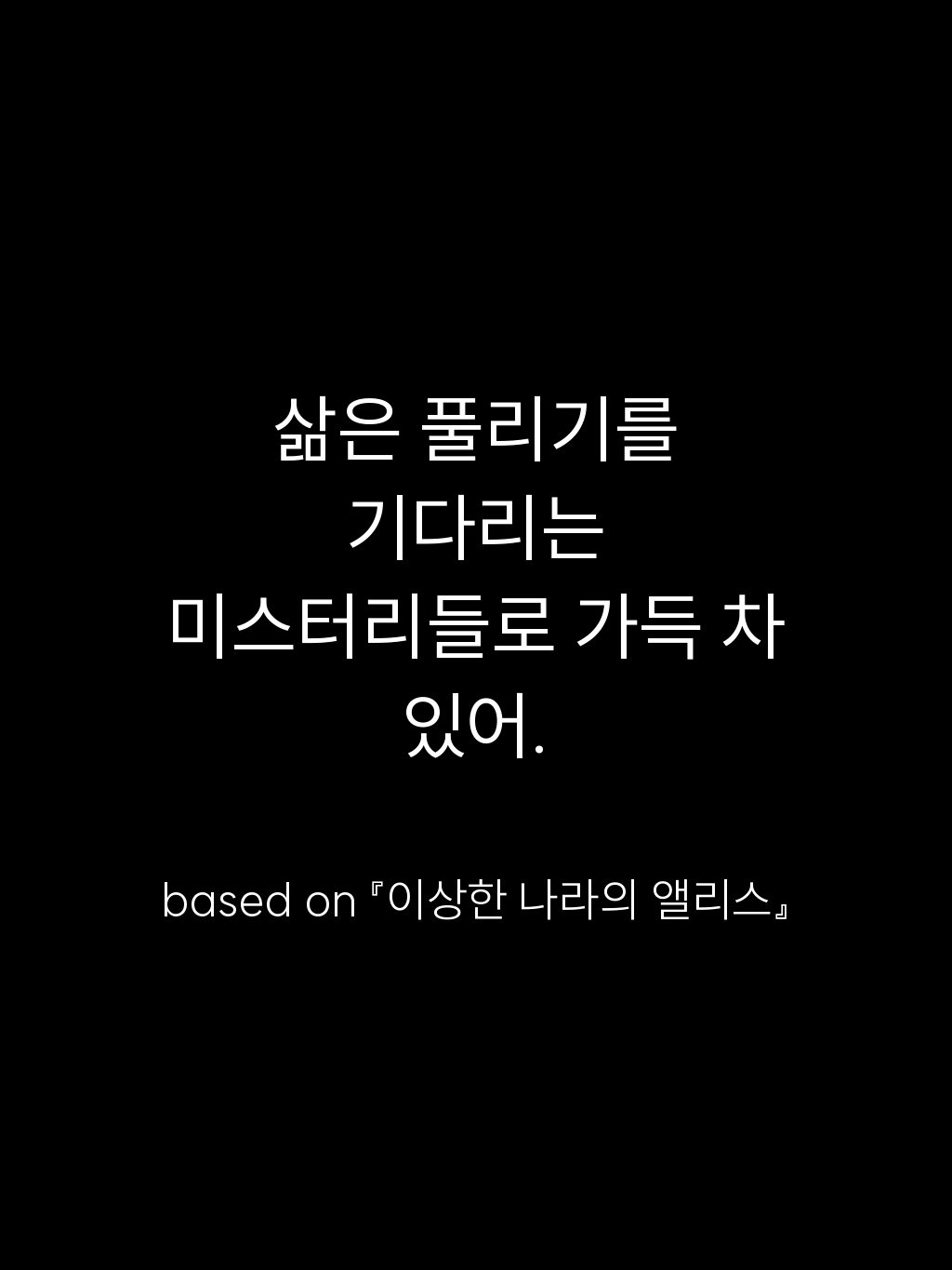 • 삶은 풀리기를 기다리는 미스터리들로 가득 차 있어. – based on 『이상한 나라의 앨리스』