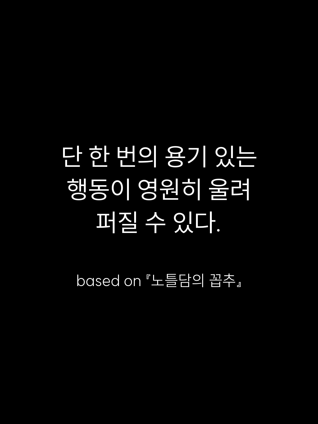 • 단 한 번의 용기 있는 행동이 영원히 울려 퍼질 수 있다. – based on 『노틀담의 꼽추』