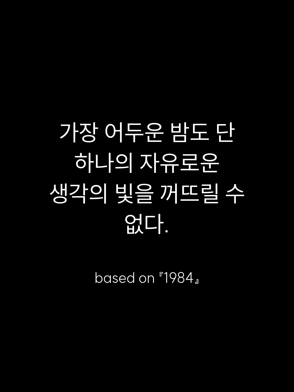 • 가장 어두운 밤도 단 하나의 자유로운 생각의 빛을 꺼뜨릴 수 없다. – based on 『1984』