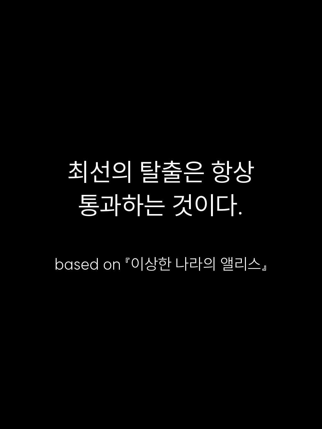 • 최선의 탈출은 항상 통과하는 것이다. – based on 『이상한 나라의 앨리스』
