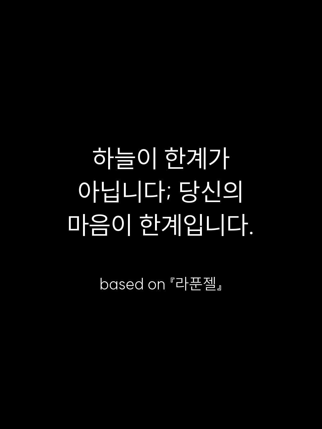 • 하늘이 한계가 아닙니다; 당신의 마음이 한계입니다. – based on 『라푼젤』