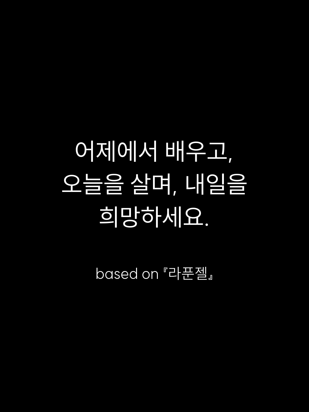 • 어제에서 배우고, 오늘을 살며, 내일을 희망하세요. – based on 『라푼젤』