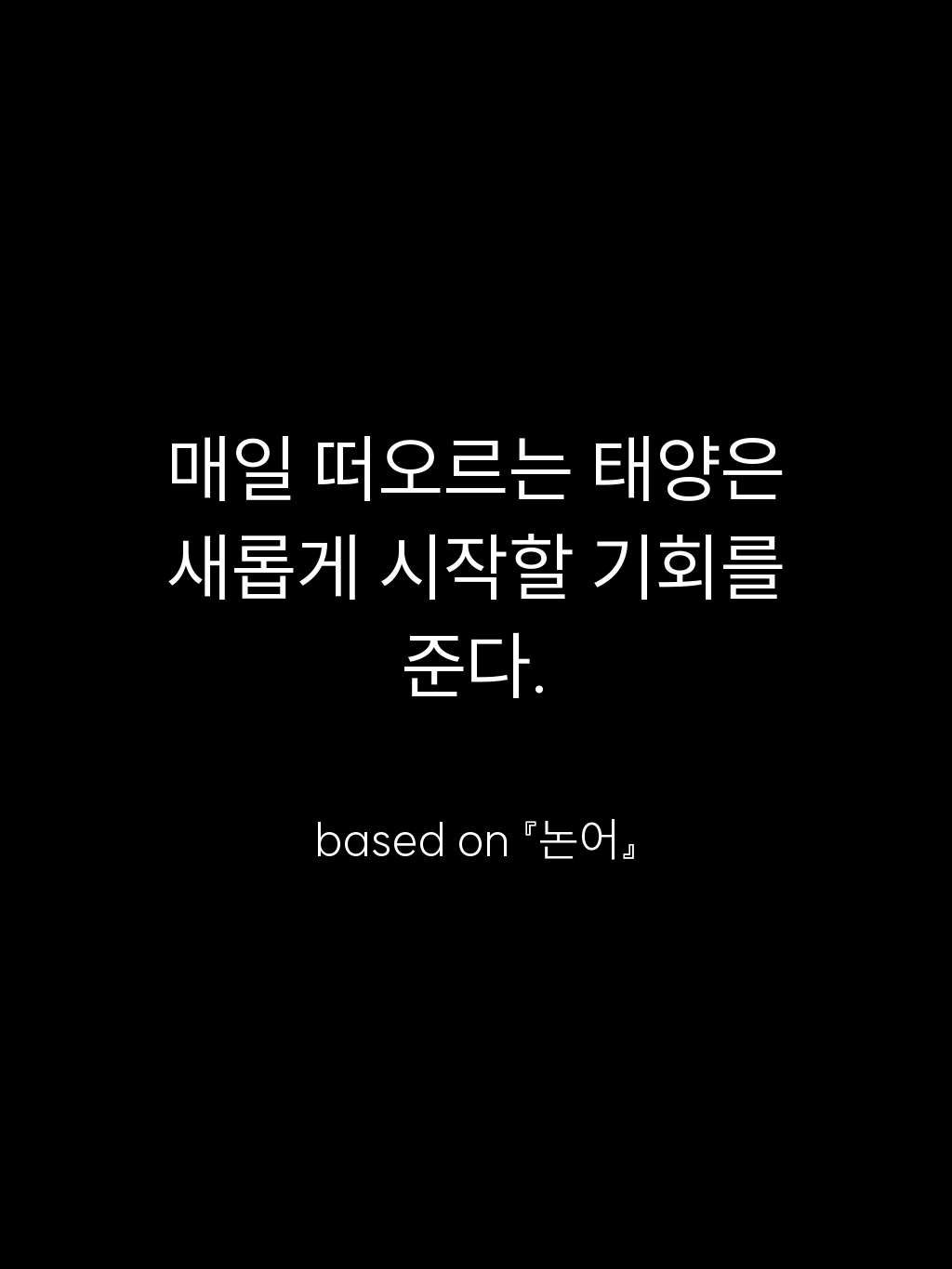 • 매일 떠오르는 태양은 새롭게 시작할 기회를 준다. – based on 『논어』