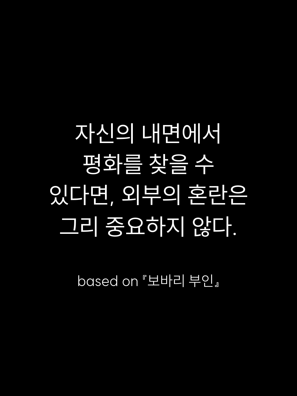 • 자신의 내면에서 평화를 찾을 수 있다면, 외부의 혼란은 그리 중요하지 않다. – based on 『보바리 부인』