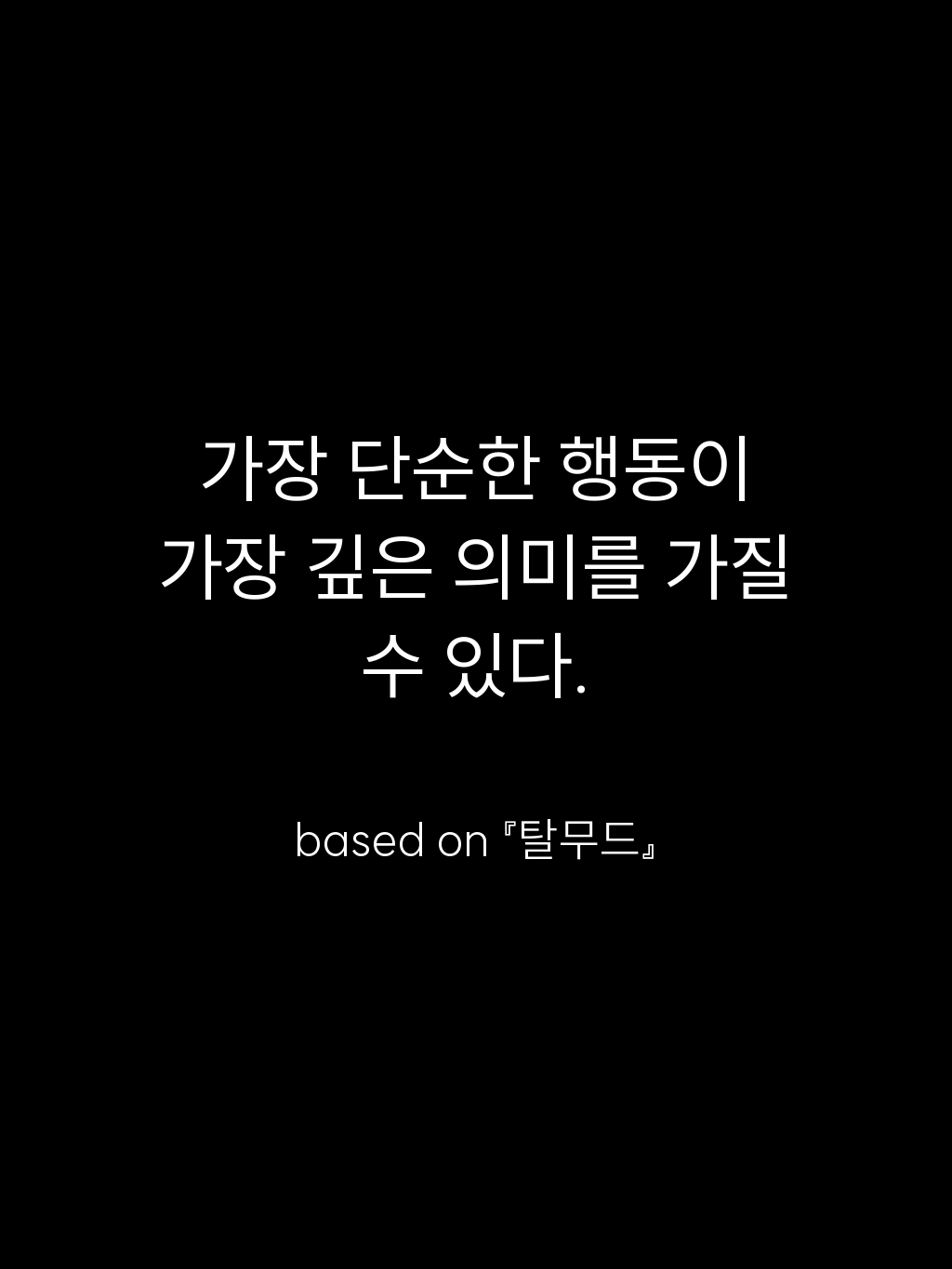 • 가장 단순한 행동이 가장 깊은 의미를 가질 수 있다. – based on 『탈무드』