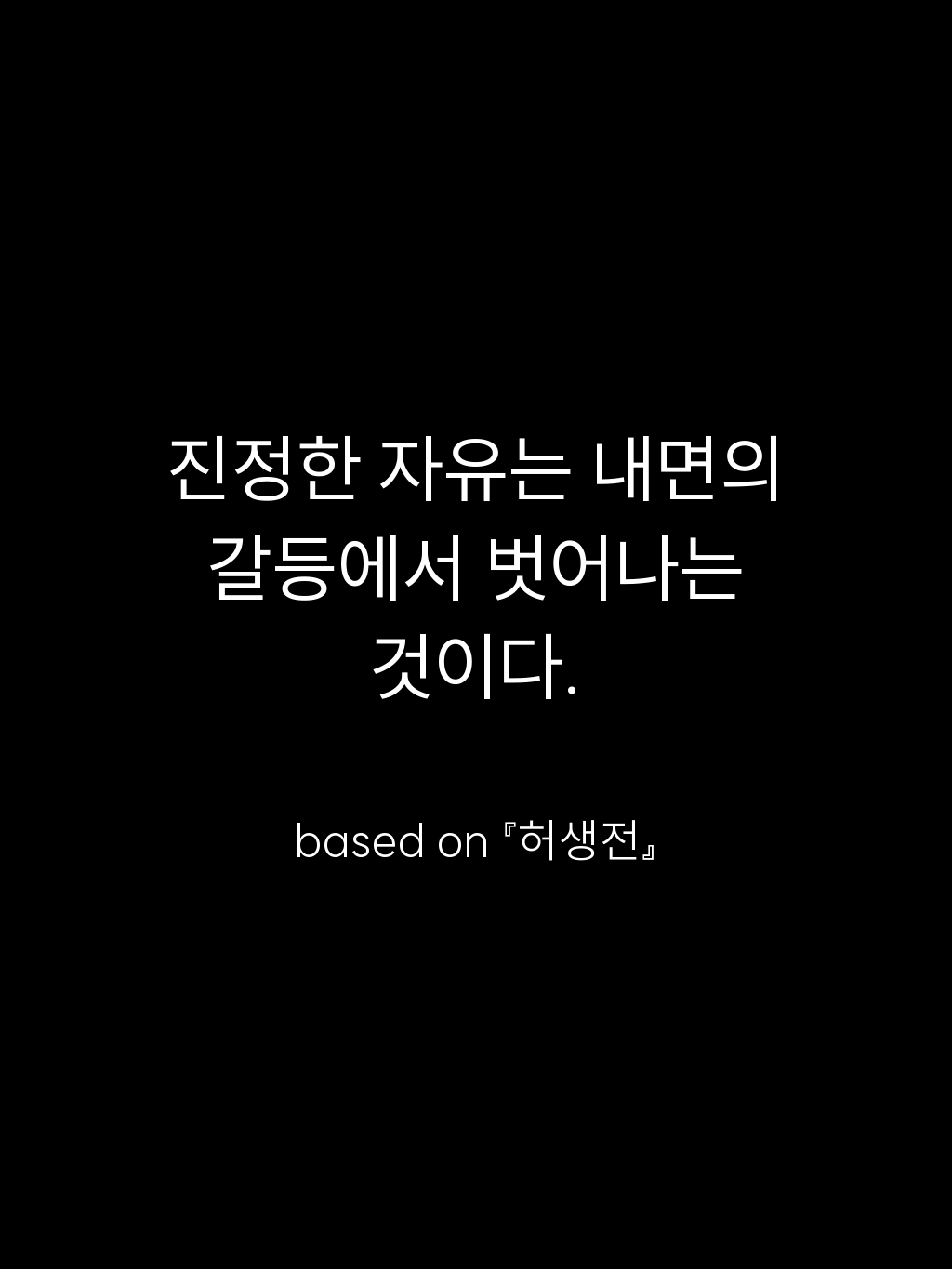 • 진정한 자유는 내면의 갈등에서 벗어나는 것이다. – based on 『허생전』