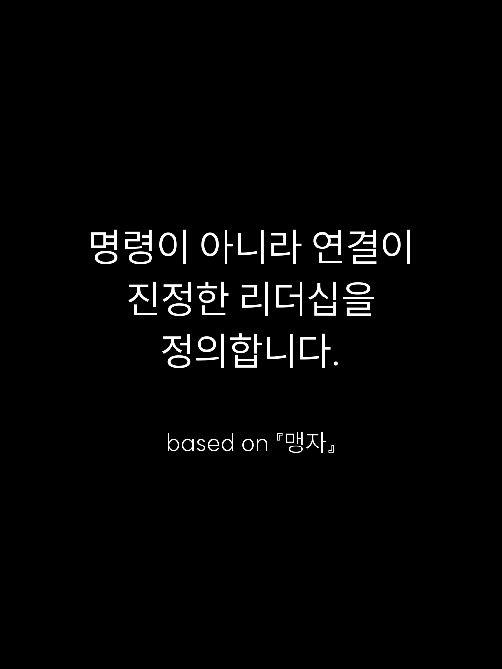 • 명령이 아니라 연결이 진정한 리더십을 정의합니다. – based on 『맹자』