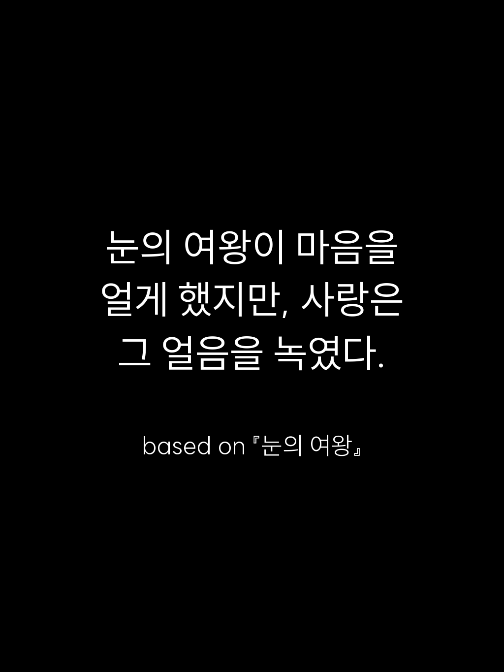 • 눈의 여왕이 마음을 얼게 했지만, 사랑은 그 얼음을 녹였다. – based on 『눈의 여왕』
