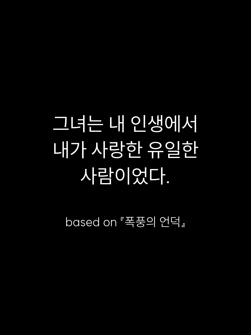 • 그녀는 내 인생에서 내가 사랑한 유일한 사람이었다. – based on 『폭풍의 언덕』
