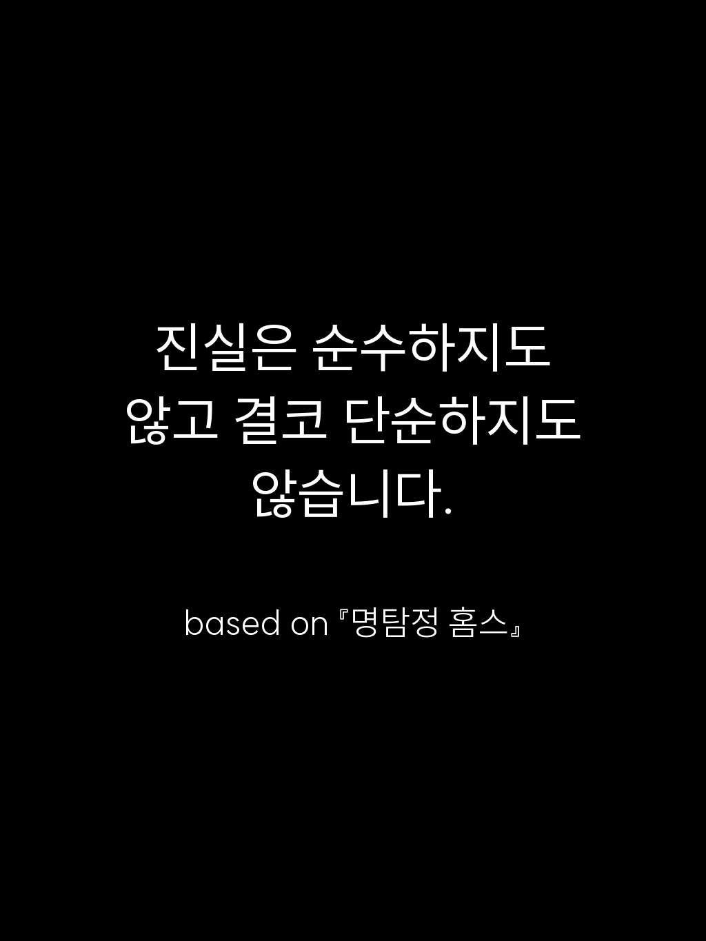 • 진실은 순수하지도 않고 결코 단순하지도 않습니다. – based on 『명탐정 홈스』