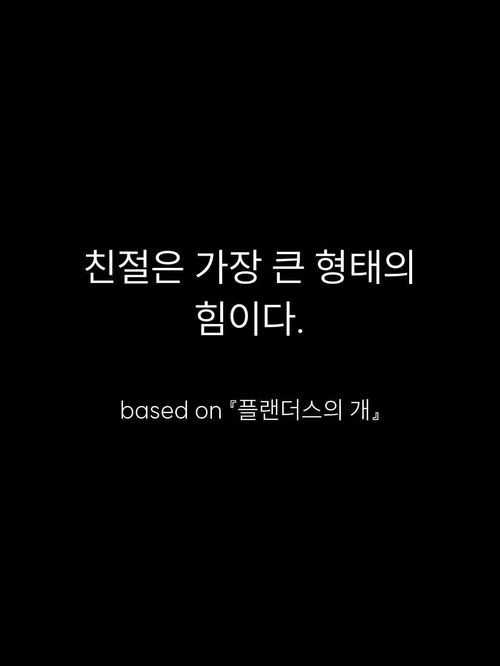 • 친절은 가장 큰 형태의 힘이다. – based on 『플랜더스의 개』