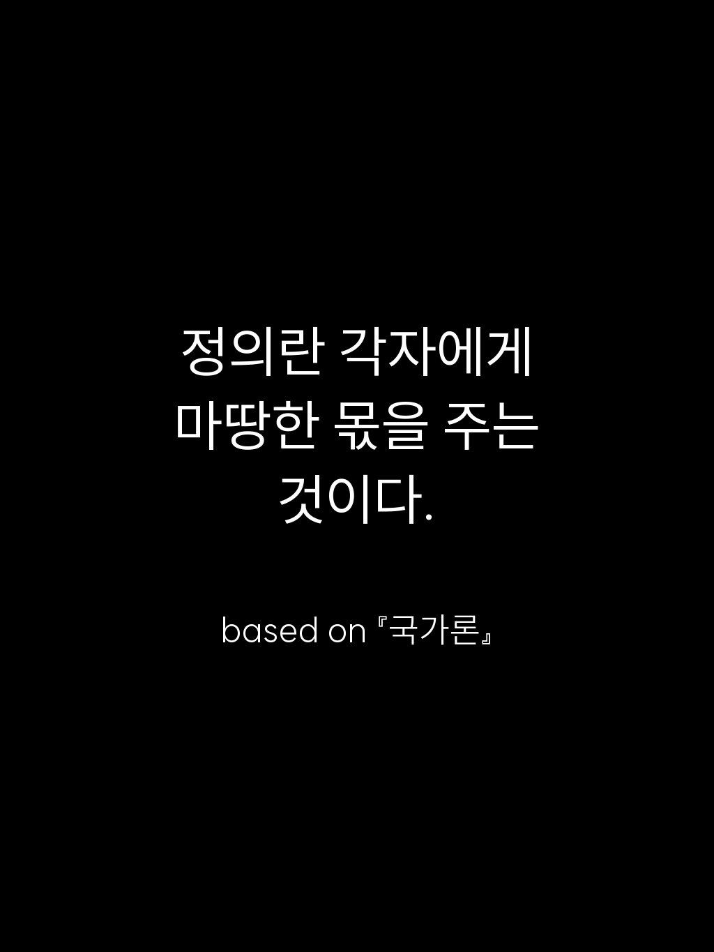 • 정의란 각자에게 마땅한 몫을 주는 것이다. – based on 『국가론』