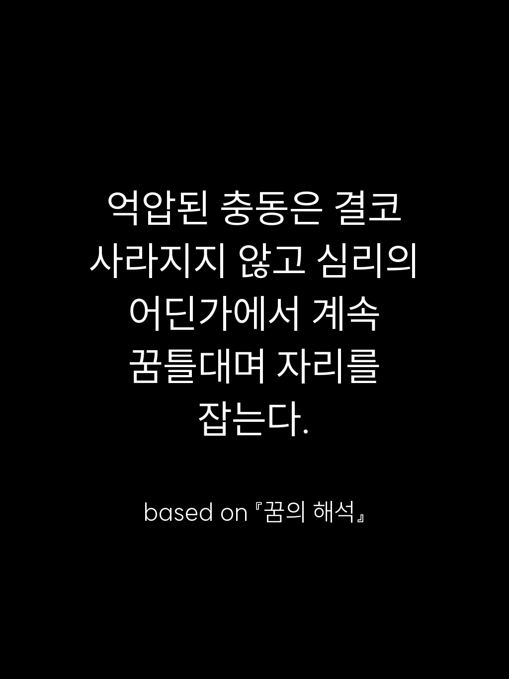 • 억압된 충동은 결코 사라지지 않고 심리의 어딘가에서 계속 꿈틀대며 자리를 잡는다. – based on 『꿈의 해석』