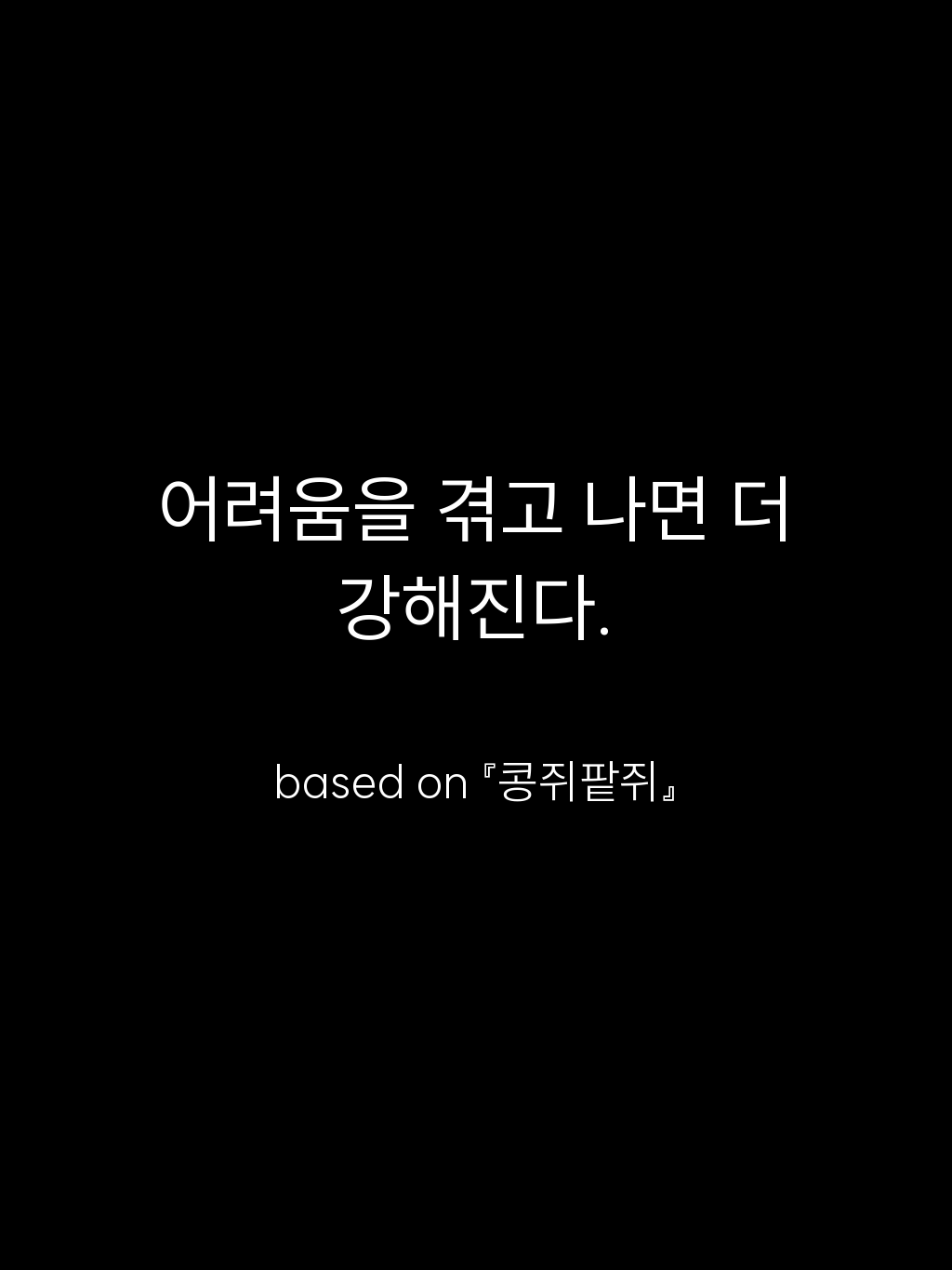 • 어려움을 겪고 나면 더 강해진다. – based on 『콩쥐팥쥐』