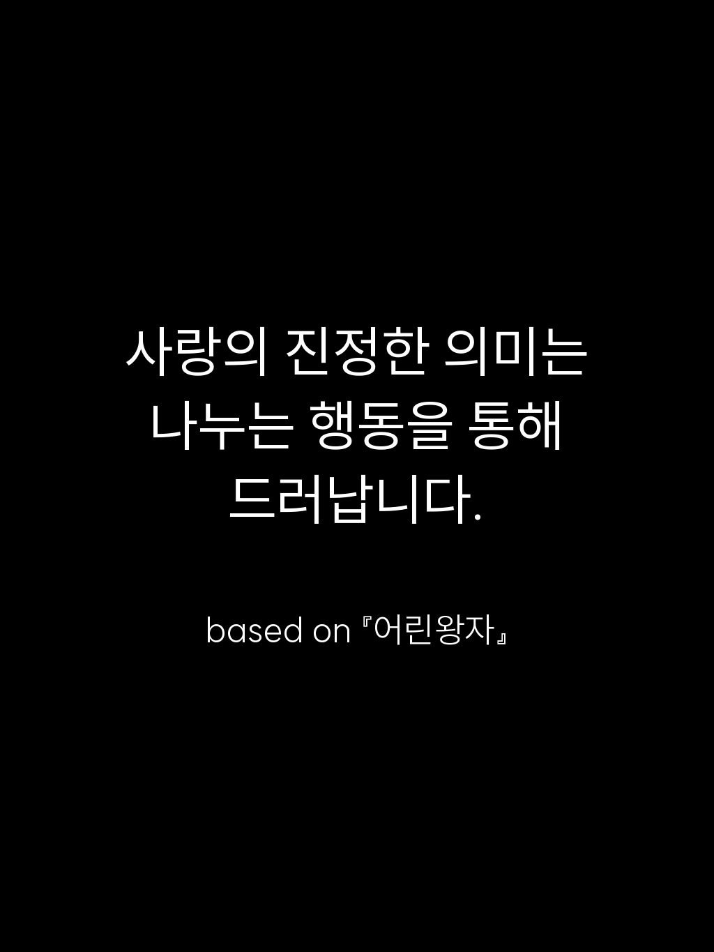• 사랑의 진정한 의미는 나누는 행동을 통해 드러납니다. – based on 『어린왕자』