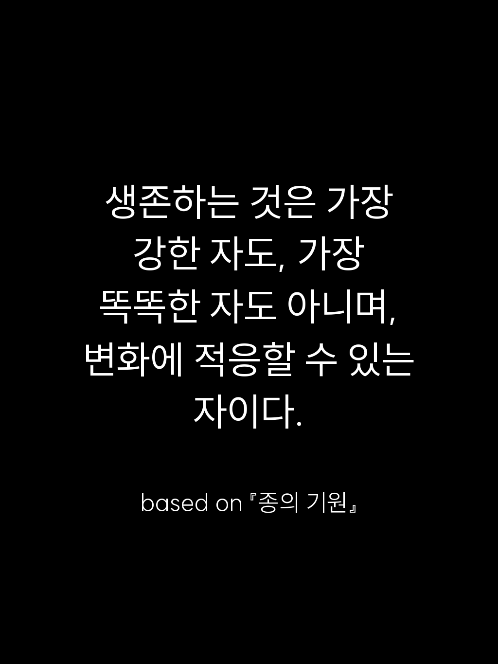 생존하는 것은 가장 강한 자도, 가장 똑똑한 자도 아니며, 변화에 적응할 수 있는 자이다.