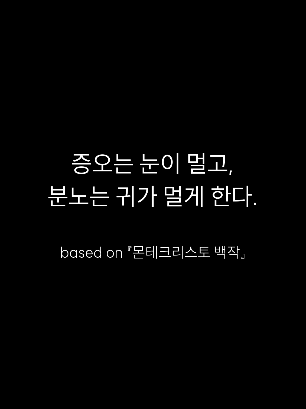 • 증오는 눈이 멀고, 분노는 귀가 멀게 한다. – based on 『몬테크리스토 백작』