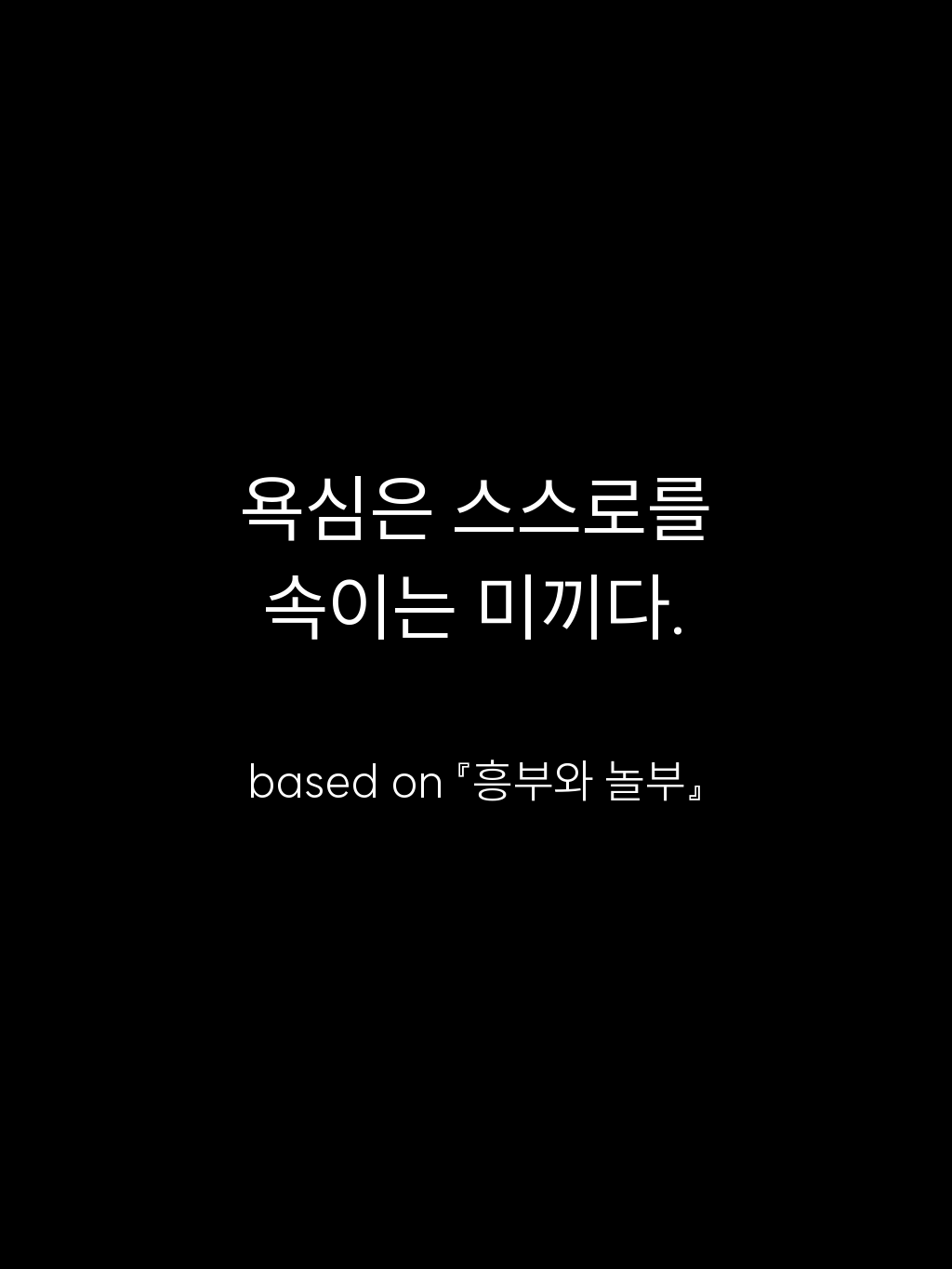 • 욕심은 스스로를 속이는 미끼다. – based on 『흥부와 놀부』