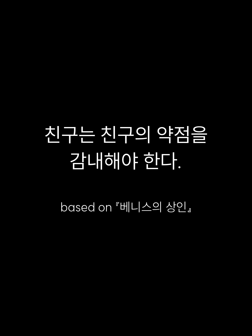 • 친구는 친구의 약점을 감내해야 한다. – based on 『베니스의 상인』
