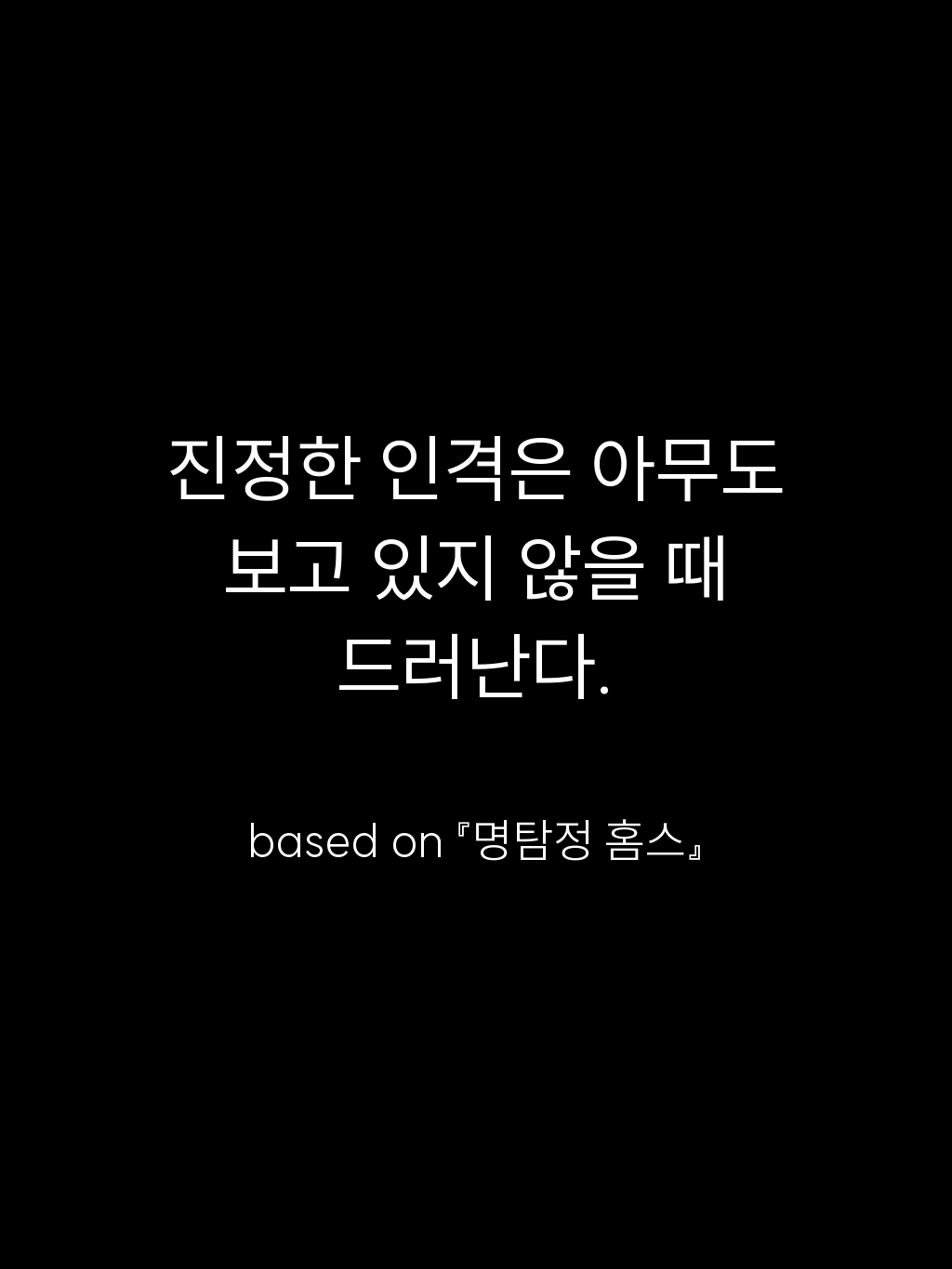 • 진정한 인격은 아무도 보고 있지 않을 때 드러난다. – based on 『명탐정 홈스』