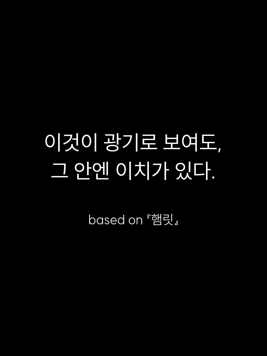 • 이것이 광기로 보여도, 그 안엔 이치가 있다. – based on 『햄릿』