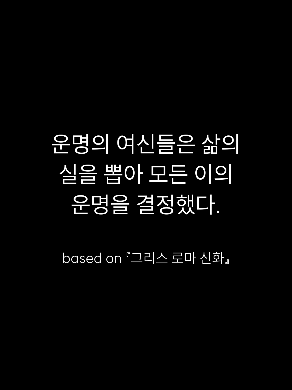 • 운명의 여신들은 삶의 실을 뽑아 모든 이의 운명을 결정했다. – based on 『그리스 로마 신화』