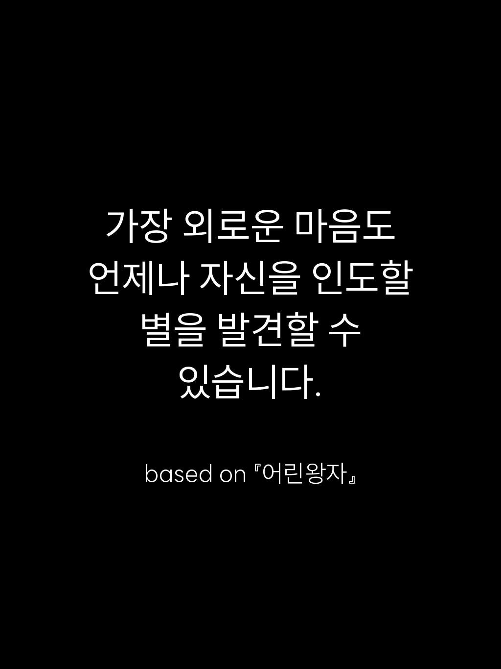 • 가장 외로운 마음도 언제나 자신을 인도할 별을 발견할 수 있습니다. – based on 『어린왕자』