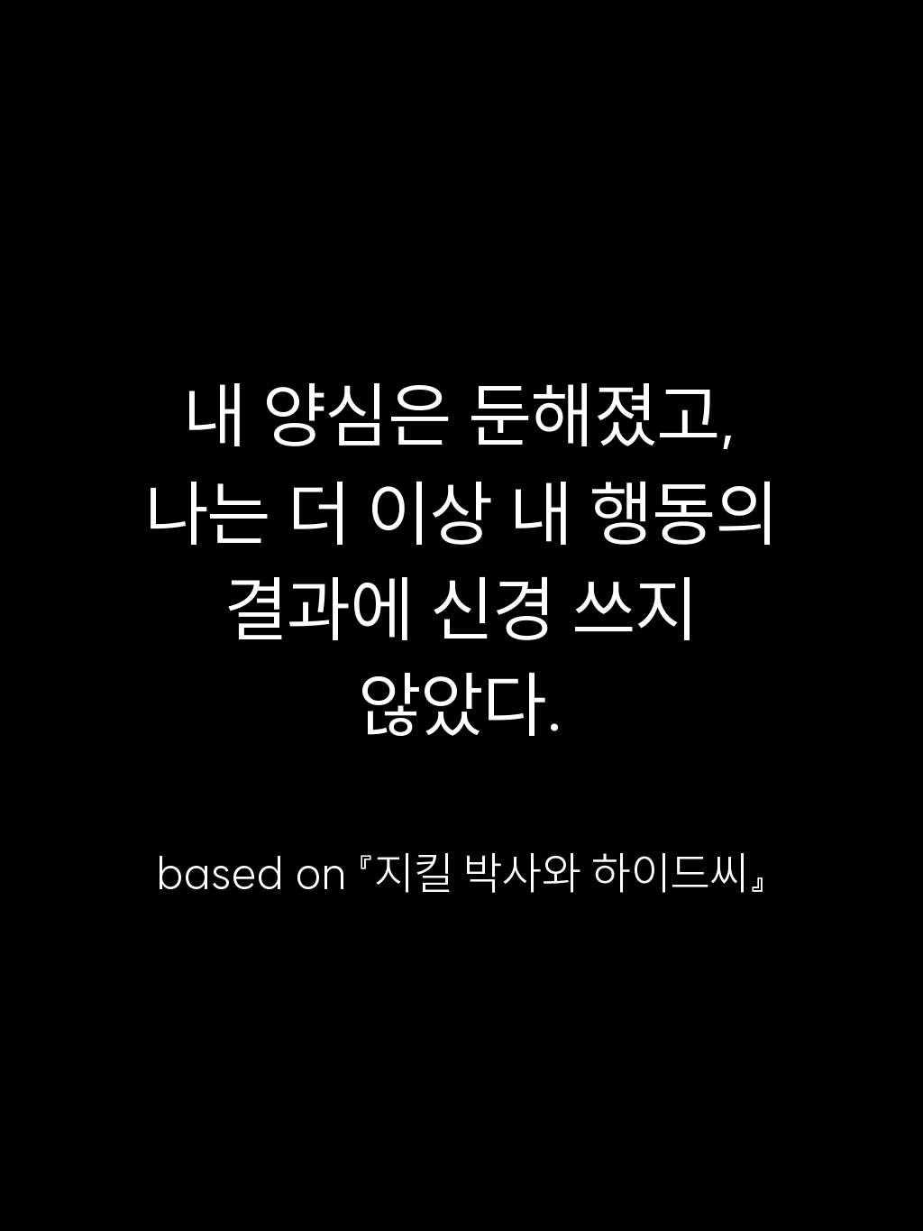 • 내 양심은 둔해졌고, 나는 더 이상 내 행동의 결과에 신경 쓰지 않았다. – based on 『지킬 박사와 하이드씨』
