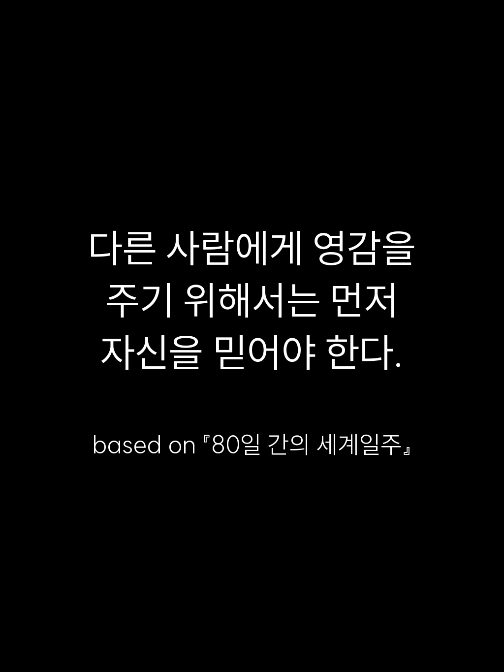 • 다른 사람에게 영감을 주기 위해서는 먼저 자신을 믿어야 한다. – based on 『80일 간의 세계일주』