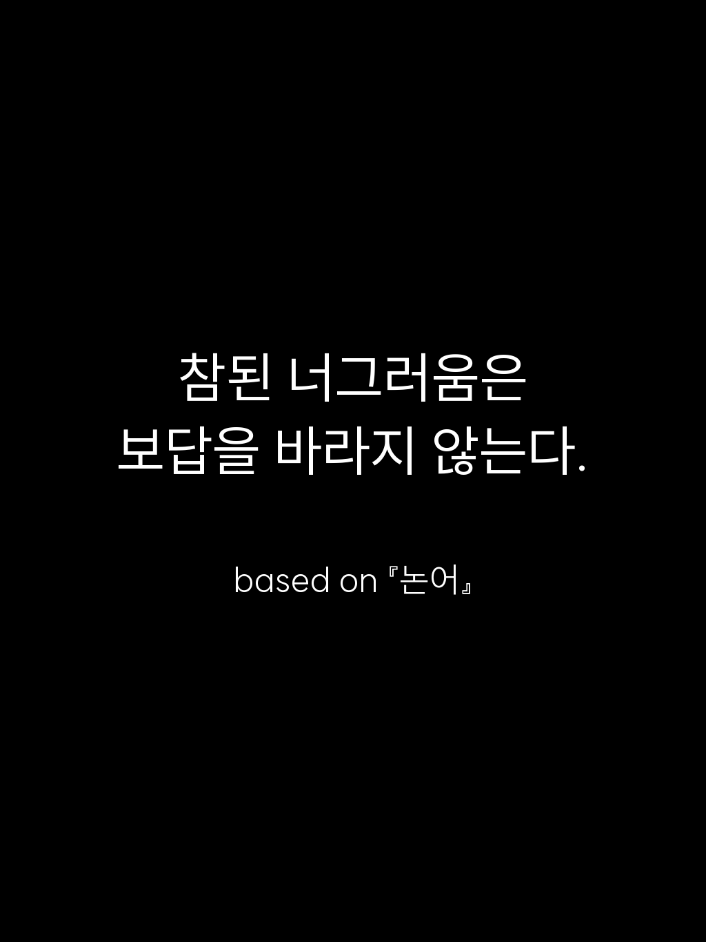 • 참된 너그러움은 보답을 바라지 않는다. – based on 『논어』