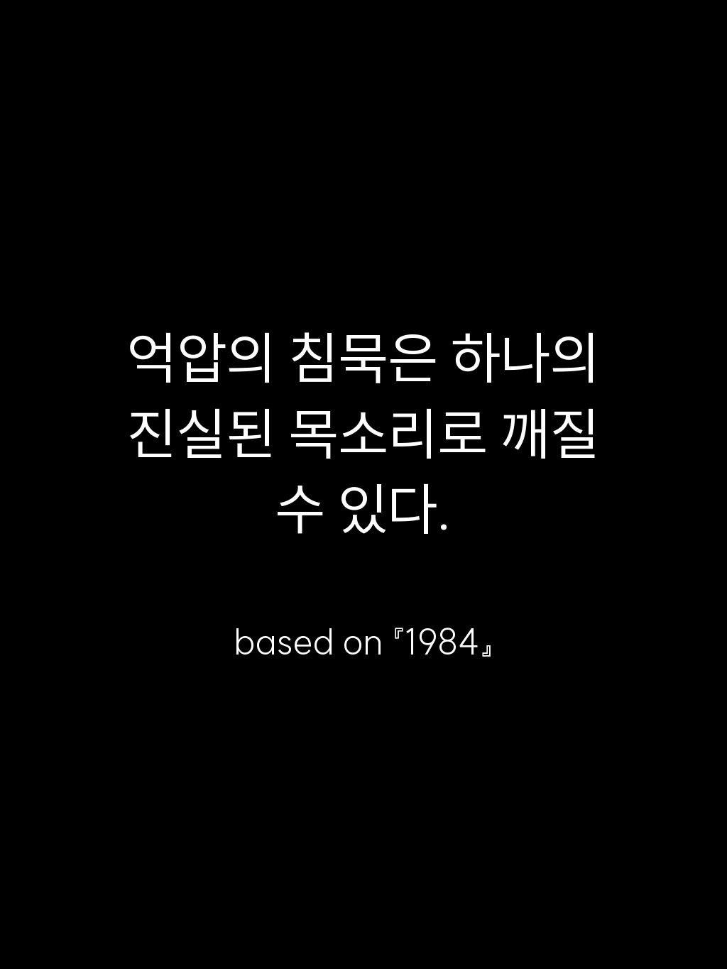 • 억압의 침묵은 하나의 진실된 목소리로 깨질 수 있다. – based on 『1984』