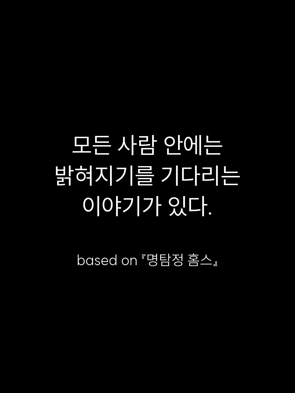 • 모든 사람 안에는 밝혀지기를 기다리는 이야기가 있다. – based on 『명탐정 홈스』