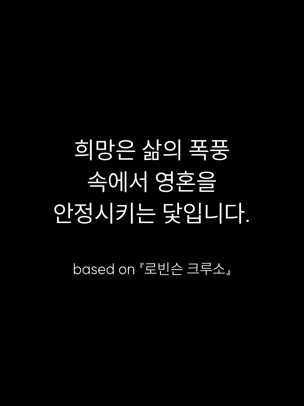 • 희망은 삶의 폭풍 속에서 영혼을 안정시키는 닻입니다. – based on 『로빈슨 크루소』
