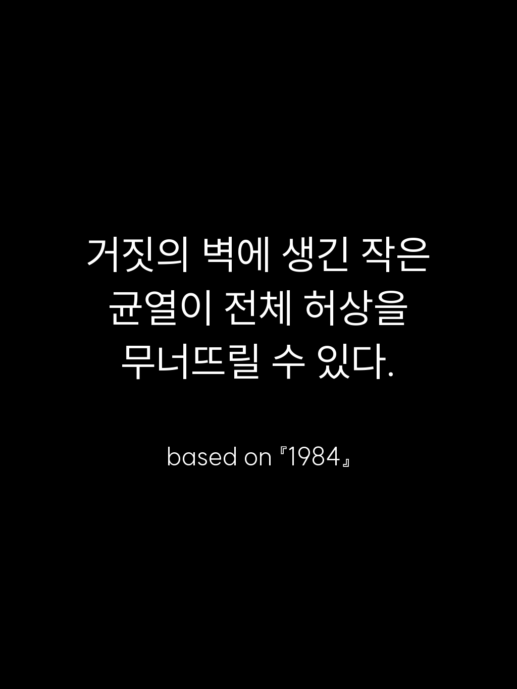 • 거짓의 벽에 생긴 작은 균열이 전체 허상을 무너뜨릴 수 있다. – based on 『1984』