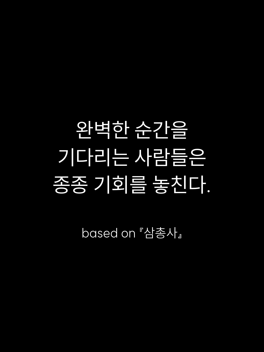 • 완벽한 순간을 기다리는 사람들은 종종 기회를 놓친다. – based on 『삼총사』